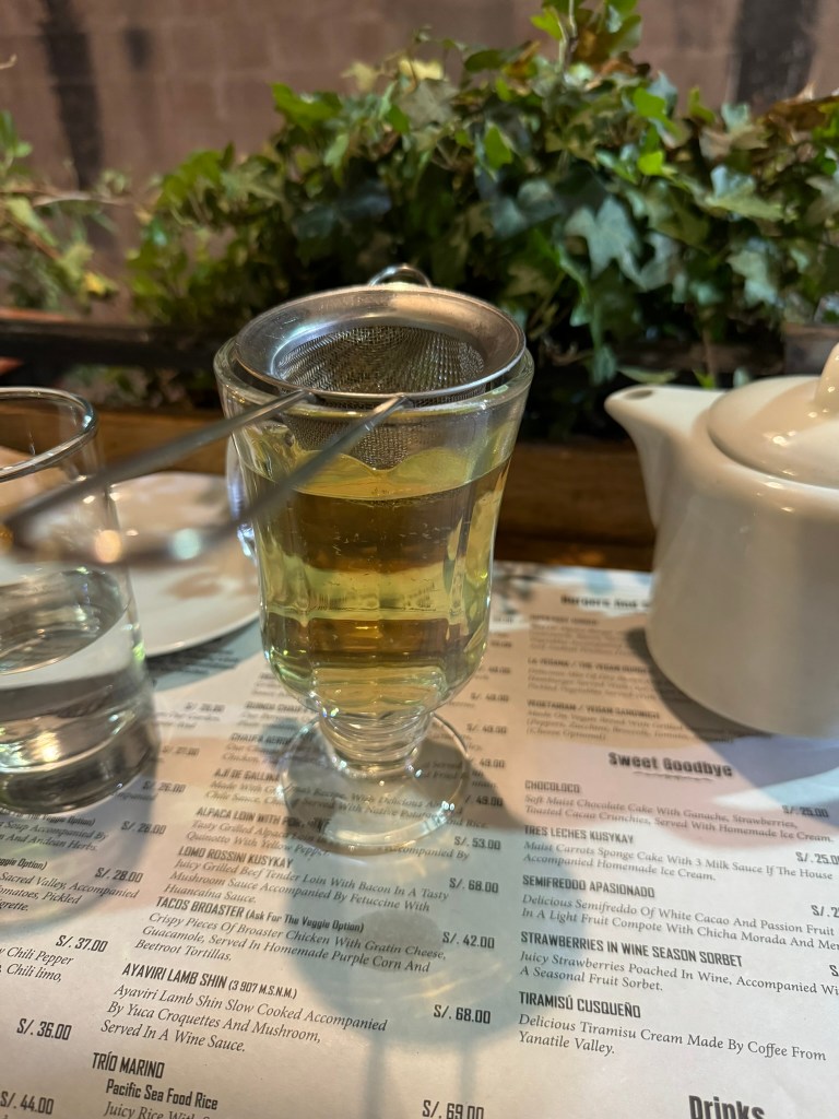 Muña tea served at a restaurant in Cusco